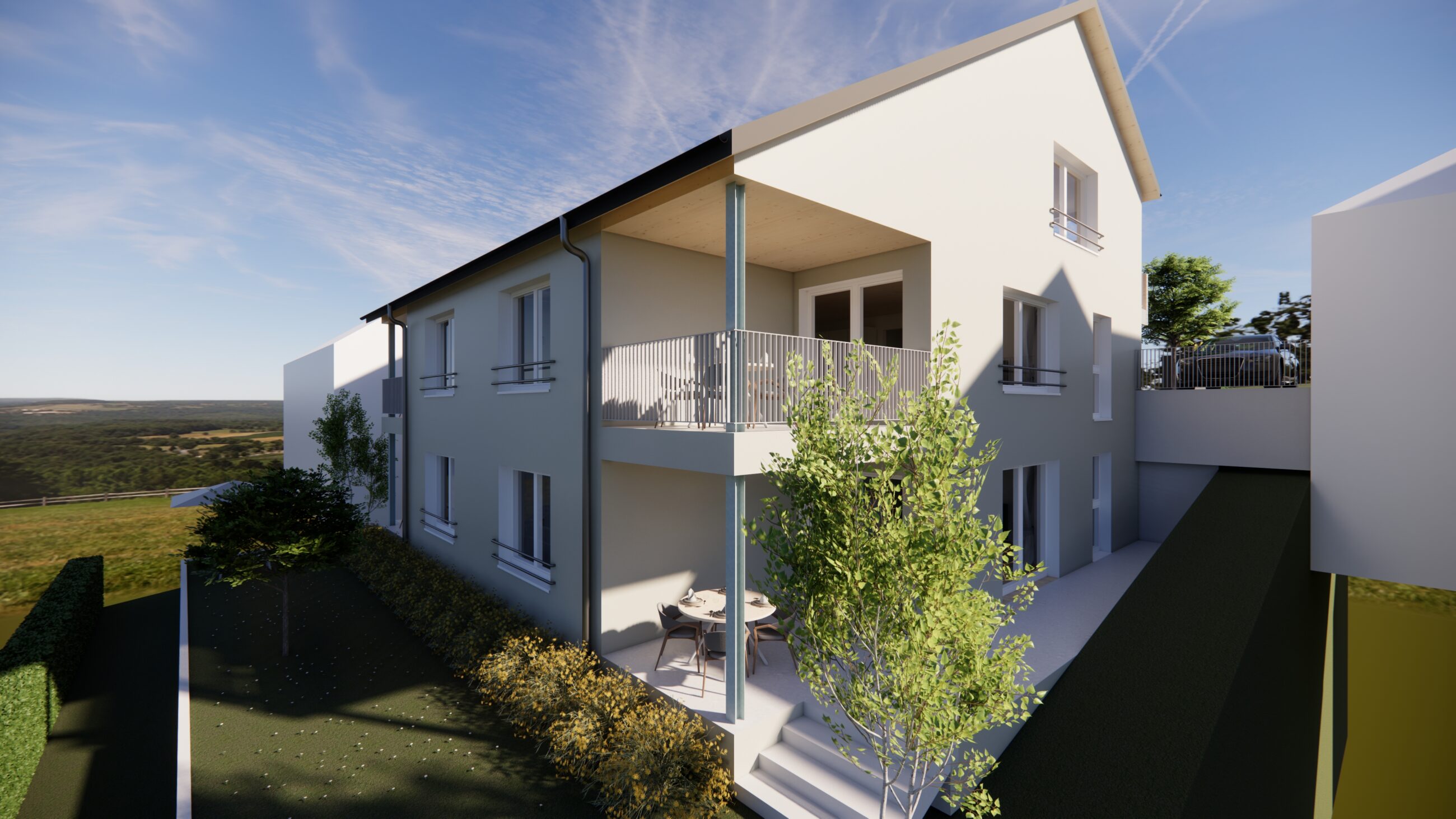 Das klimafreundliche Mehrfamilienhaus wird in einem gewachsenen Wohngebiet, im südwestlichen Teil der Gemeinde, in der Goethestraße 5 in Affalterbach gebaut und befindet sich direkt am Rand des Landschaftsschutzgebietes Lemberg.